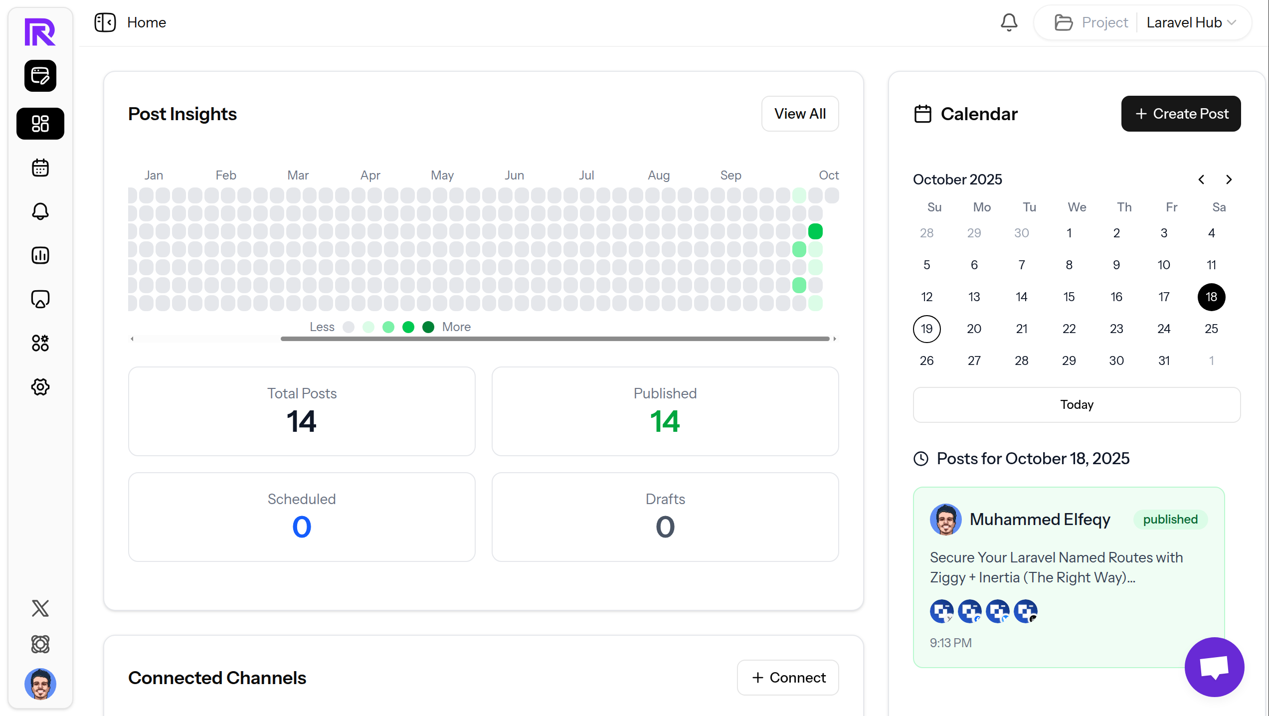 - Simple Dashboard: Connect your accounts, write your post, preview, and publish.